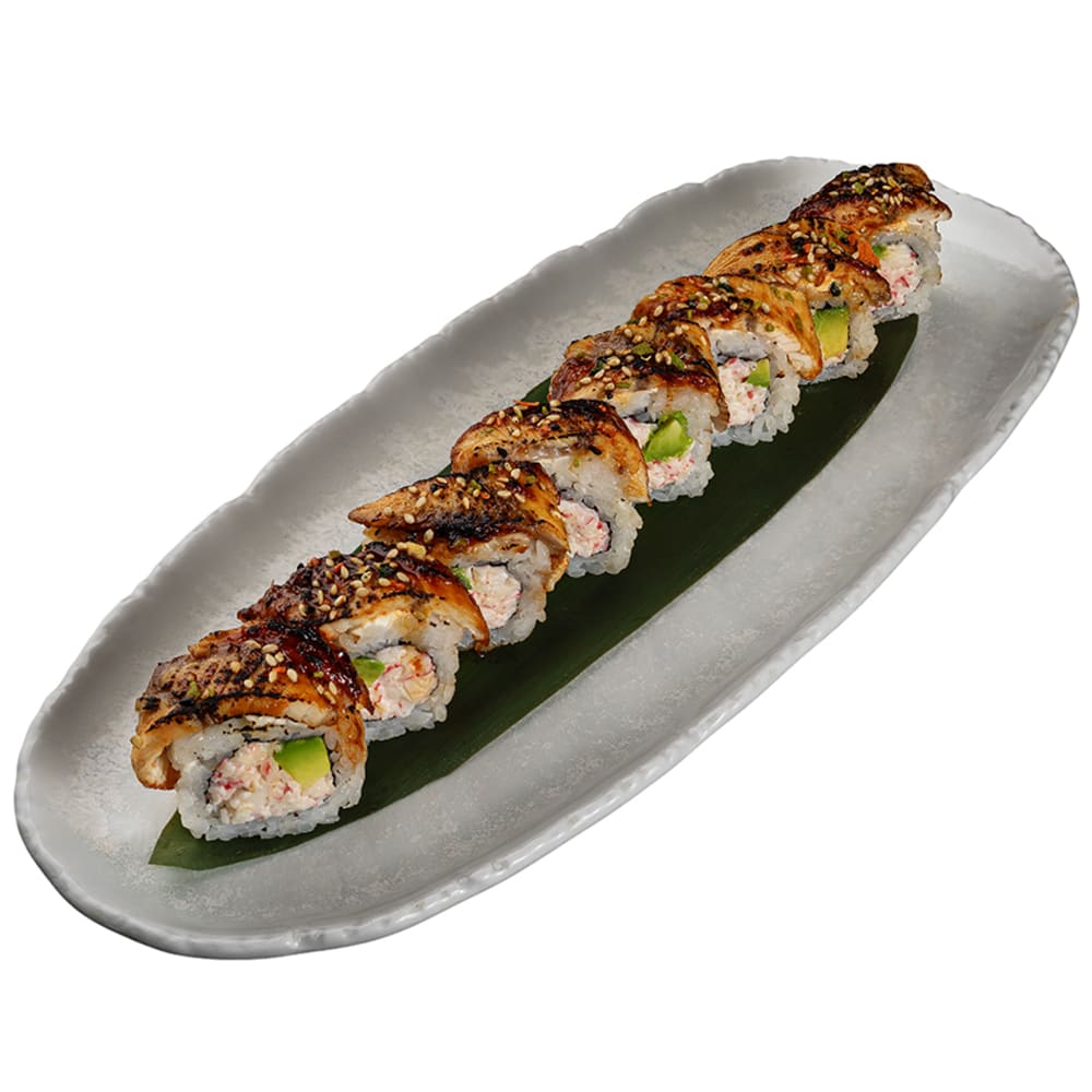 Zutis, siers, avokado, unagi mērce, sezama sēklas