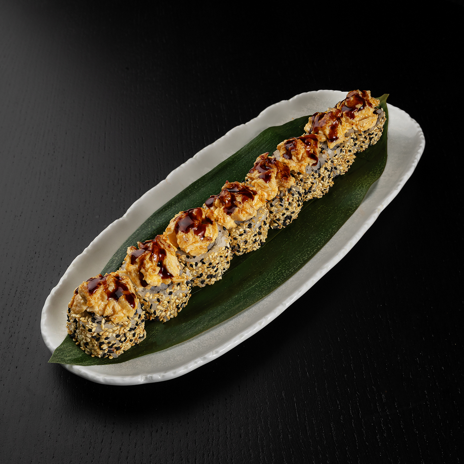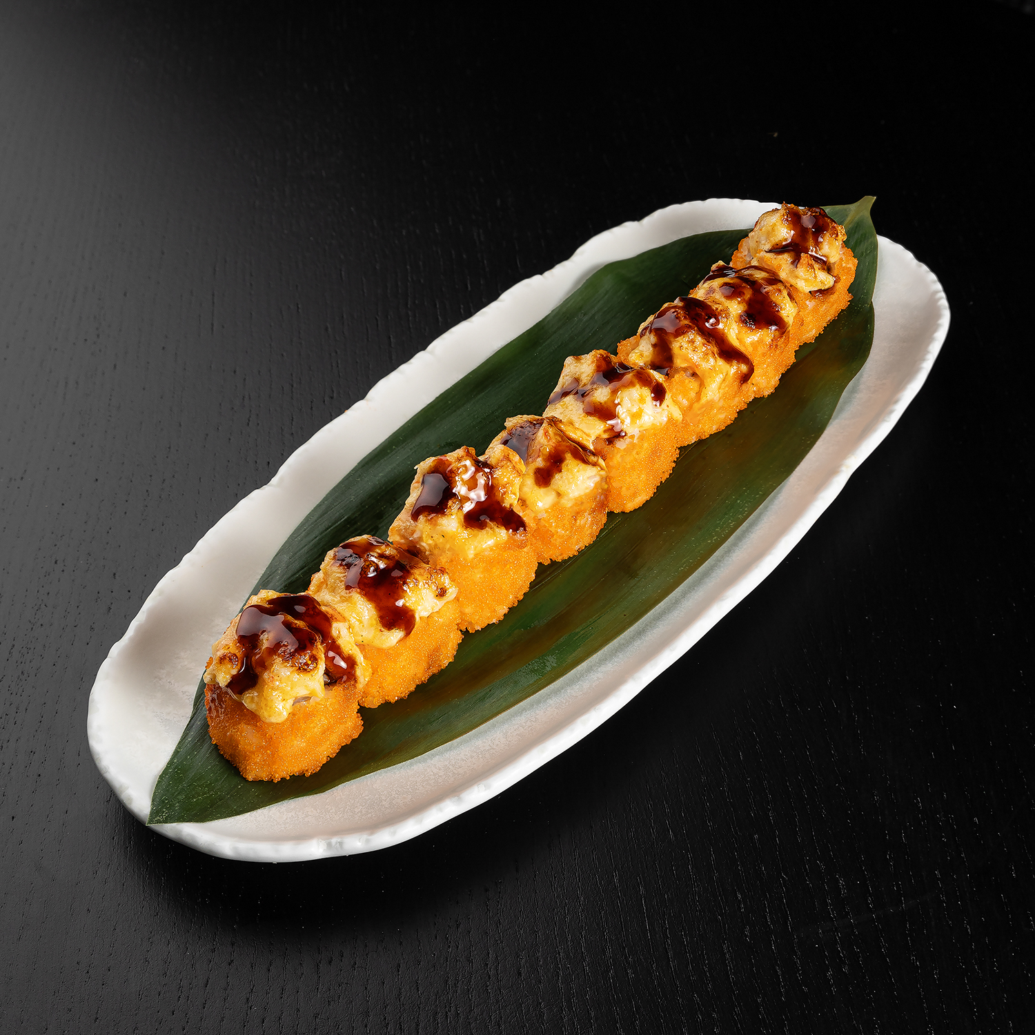 Tīģergarnele, avokado, siers, siera cepurīte, spicy mērce, teriyaki mērce