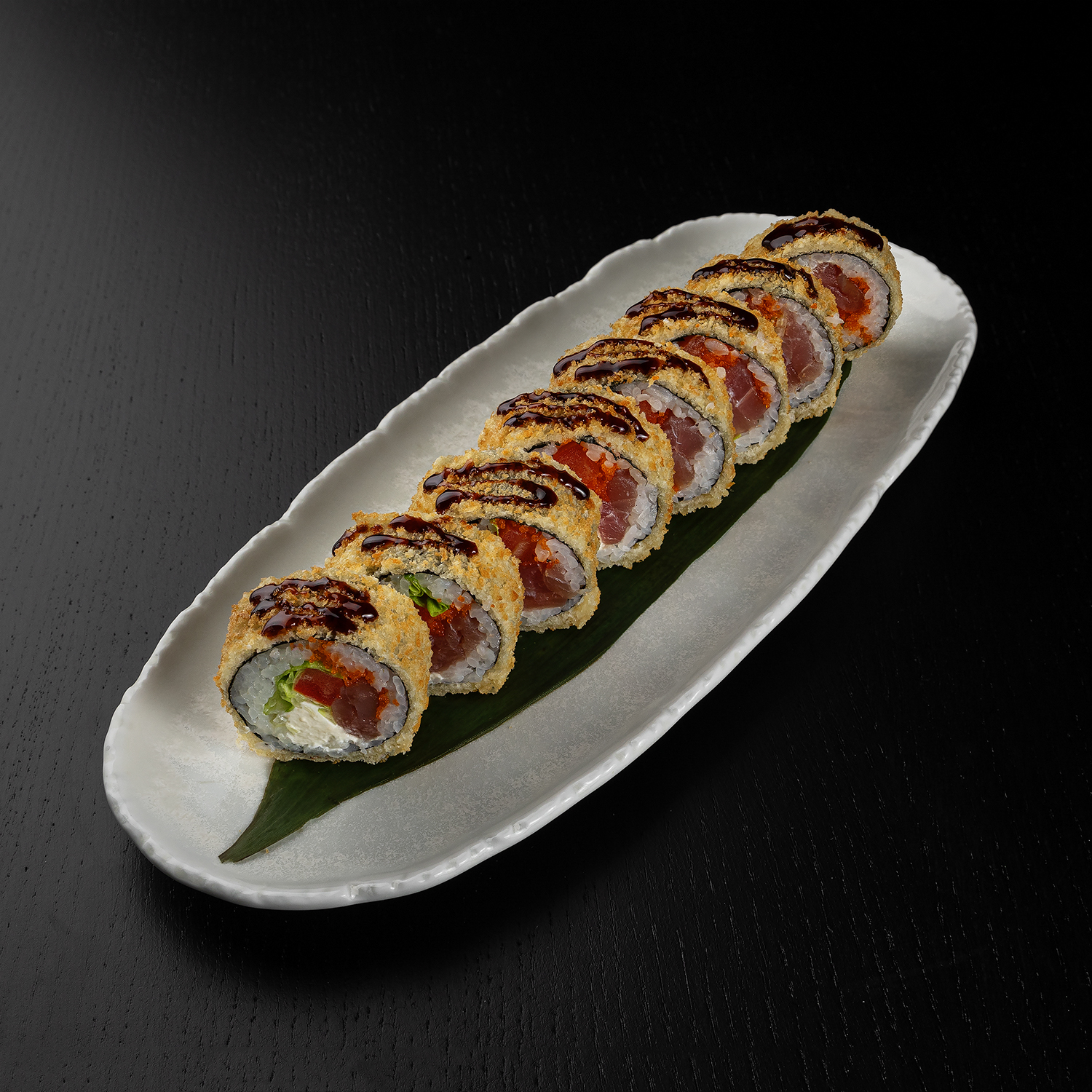 Tīģergarnele, avokado, siers, spicy mērce, teriyaki mērce
